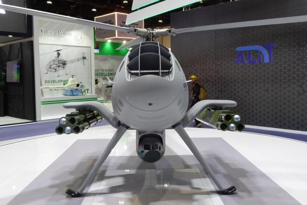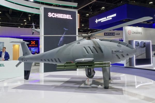UMEX 2026 – Работники организации Schiebel представляют беспилотный летательный аппарат Camcopter S-301 вертикального взлёта и посадки с ракетным вооружением