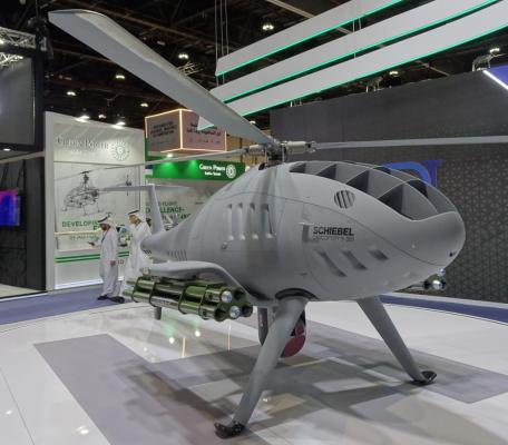 Работники австрийской организации Schiebel представили свой беспилотный летательный аппарат (БПЛА) вертикального взлёта и посадки Camcopter S-301 (VTOL). В то время как на всех предыдущих рекламных плакатах машина была представлена с бортовыми блоками для развертывания гидроакустических буев, в Абу-Даби макет С-301 был представлен с двумя блоками (ракетными блоками), расположенными по бокам, от организации Thales.